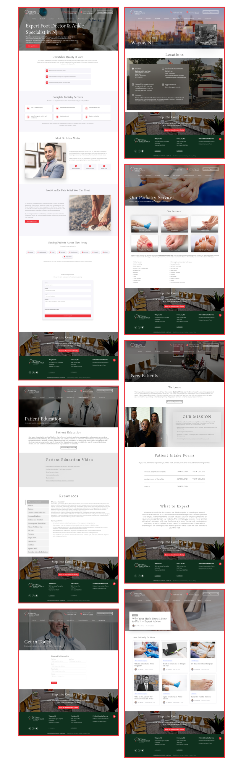 This website was designed for a podiatry clinic to establish a strong, trustworthy digital presence and make patient care easily accessible online. The goal was to clearly communicate medical expertise, highlight comprehensive foot and ankle services, and guide patients smoothly toward booking appointments. With a clean, professional layout, clear service sections, doctor introduction, and strong calls to action, the website enhances credibility, improves user experience, and supports patient engagement across New Jersey.