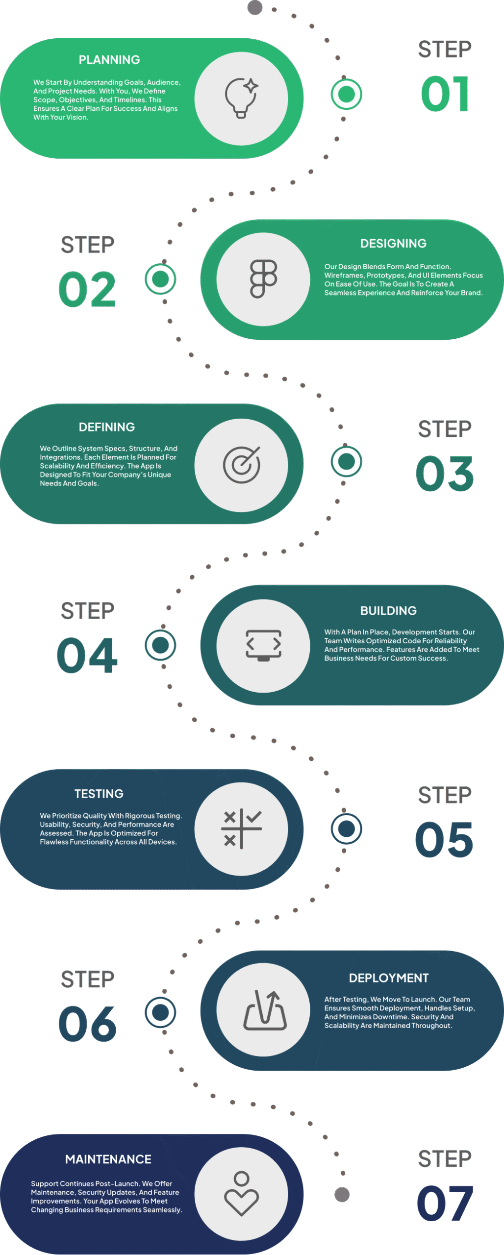 We ensure a seamless procedure for development that’s adapted to meet your specific needs from conception to the moment of launch. We aim to offer quality, scalable solutions that efficiently and accurately help your business grow.